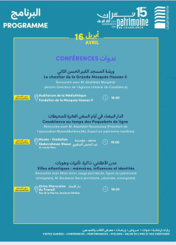 Dans le cadre de la 15ᵉ édition des Journées du Patrimoine de Casablanca, prévue du 13 au 19 avril 2026, une série de conférences est organisée le 16 avril, confirmant la dynamique culturelle et patrimoniale que connaît la métropole. Cet événement, devenu incontournable, propose chaque année une programmation variée mêlant visites guidées, rencontres, ateliers et expositions, visant à valoriser le patrimoine architectural et historique de la ville.