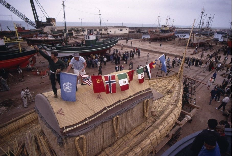 L’expédition « RA 2 », initiée par le célèbre explorateur norvégien Thor Heyerdahl, visait à prouver que les civilisations anciennes pouvaient avoir traversé l’océan Atlantique à bord d’embarcations en papyrus, reliant ainsi l’Afrique aux Amériques bien avant l’ère moderne. Le radeau a quitté le port de Safi le 17 mai 1970, et après 57 jours de navigation, l’équipage a accosté à La Barbade, dans les Caraïbes. Ce voyage a démontré qu’il était possible, même à l'époque préhistorique, de traverser l'Atlantique avec des moyens rudimentaires, une hypothèse qui éclaire les similitudes architecturales et culturelles entre l’Égypte antique et les civilisations précolombiennes d’Amérique latine.