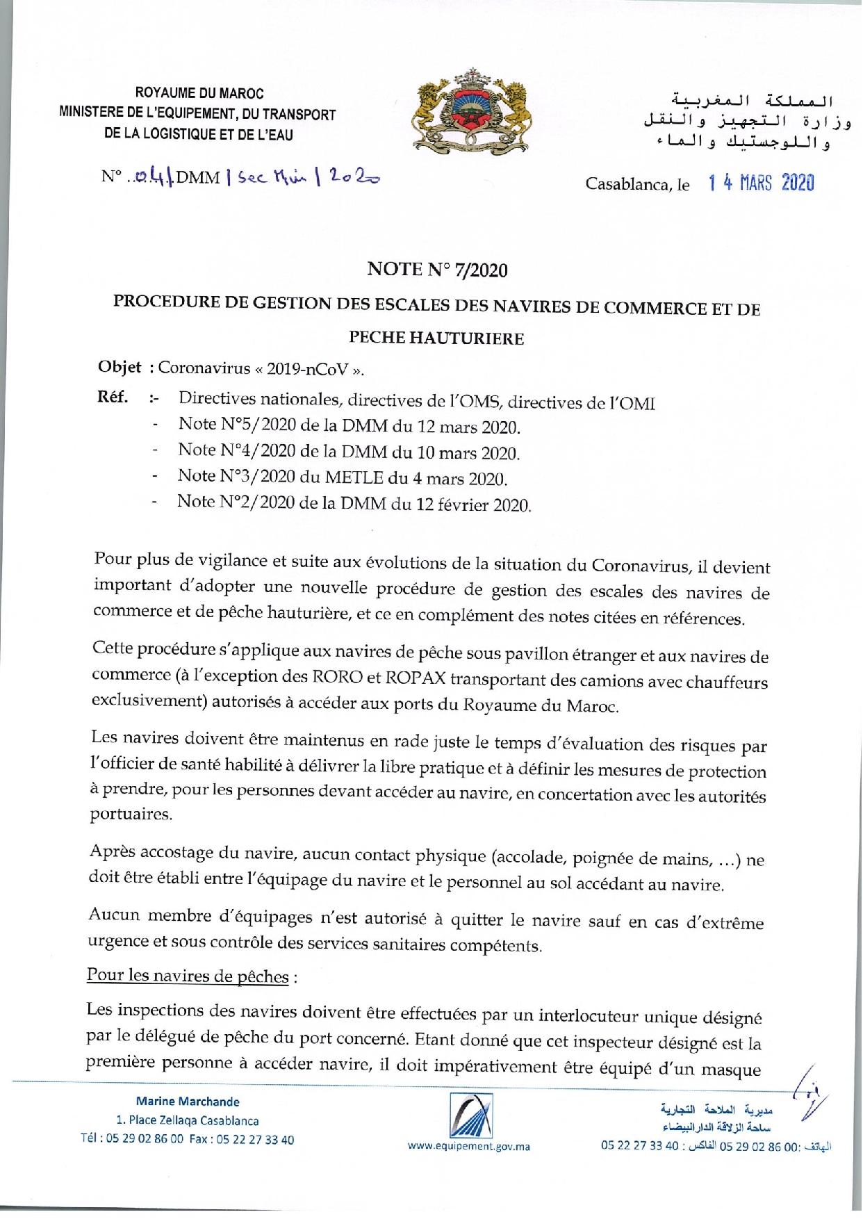 En effet, le Ministère semble avoir répondu favorablement aux demandes des différents acteurs qui jugeait que la mise en quarantaine, risquait tout simplement d’obliger ces navires à éviter d’escaler dans les ports marocains et isoler tout bonnement le Royaume qui ne dispose pas de sa propre flotte marchande pour assurer son indépendance en matière de transport maritime.