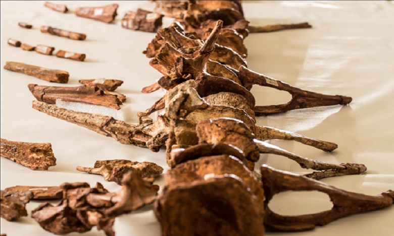 Découvert, dans la région d’Erfoud, le premier Dinosaure aquatique connu au monde qui vivait dans la période du Crétacé, il y a environ 100 millions d’années est la première découverte de restes crâniens et postcrâniens associés de dinosaure après près de 70 ans de travail paléontologique dans la région, explique l’université. « Ces chercheurs fournissent les preuves les plus convaincantes à ce jour à propos d’un dinosaure en mesure de vivre et de chasser dans un environnement aquatique », ajoute le communiqué.