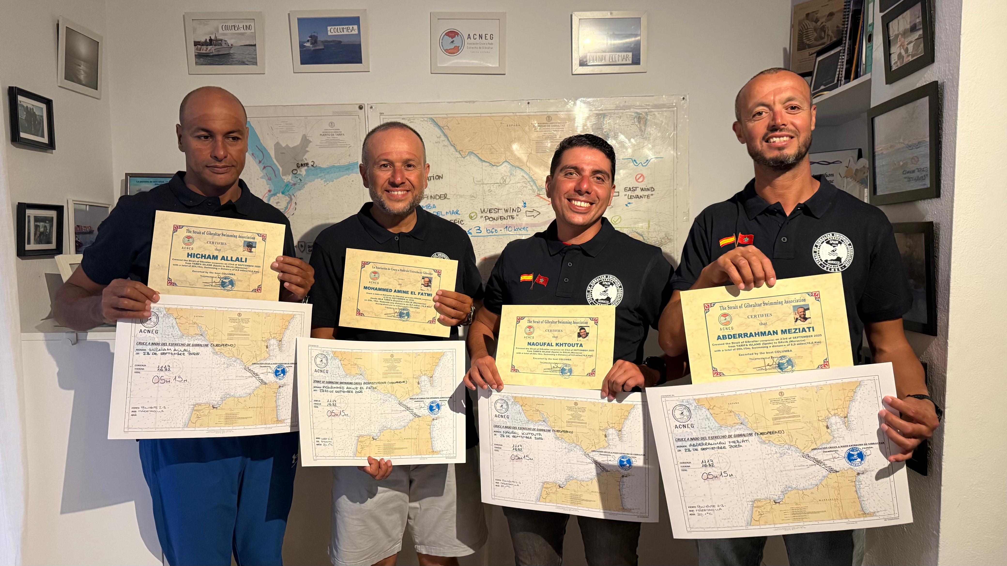 Ainsi, c’est par un temps favorable que l’équipe composée de 4 nageurs : Mohammed Amine El Fatmi, Abderrahman Meziati, Hicham Allali et Naoufal Khouta ont pris le départ de tarifa le mardi 23 Septembre 2025 à 11h57 et sont arrivés dans un temps de 5 heures et 15 minutes à rejoindre les plages de Dalia (Maroc), parcourant une distance totale de 16,6 kilomètres en combinaison. Deux marins, officiers de la Marine Marchande ont relevé ce defi: