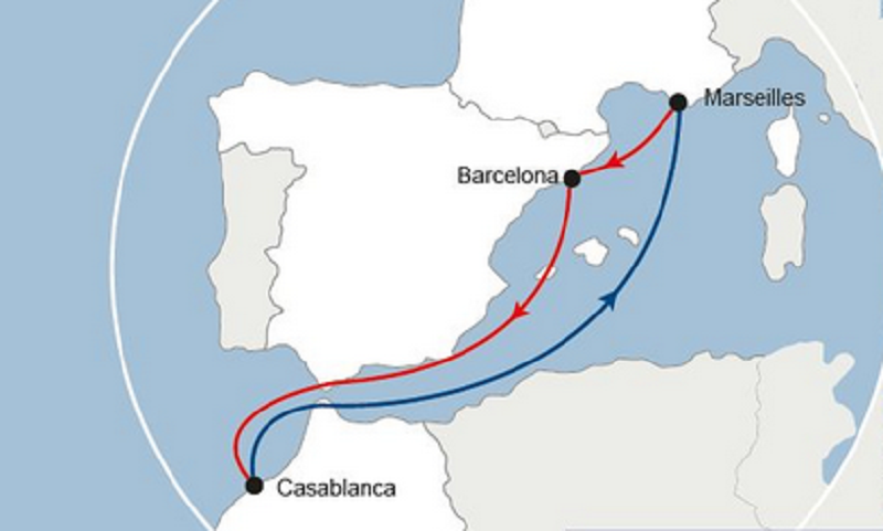Casablanca/Marseille en 2,5 jours.