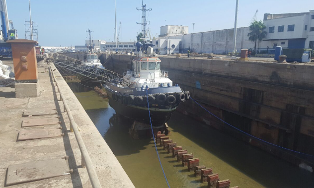 L’activité de réparation navale reprend de plus belle au niveau du port de Casablanca, en effet, une grosse file d’unités, surtout d’engins de servitude et en grande majorité des remorqueurs sont en attente de leur passage en cale sèche.