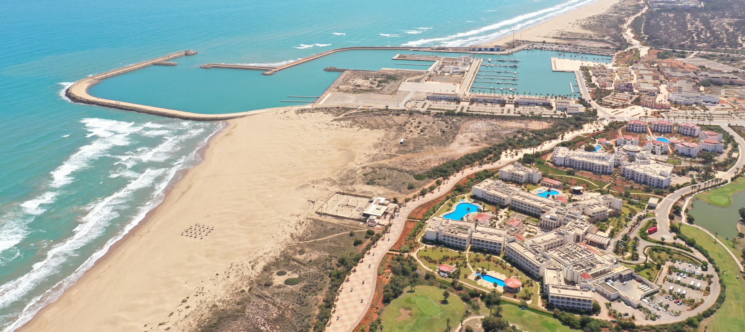 La cité balnéaire Saidia Resorts s’étend sur une superficie de 712 hectares, elle comprend une Marina de plus de 850 anneaux, deux parcours de golf de 18 trous, un aquaparc, un centre commercial, des restaurants, des hôtels et une composante résidentielle haut standing.