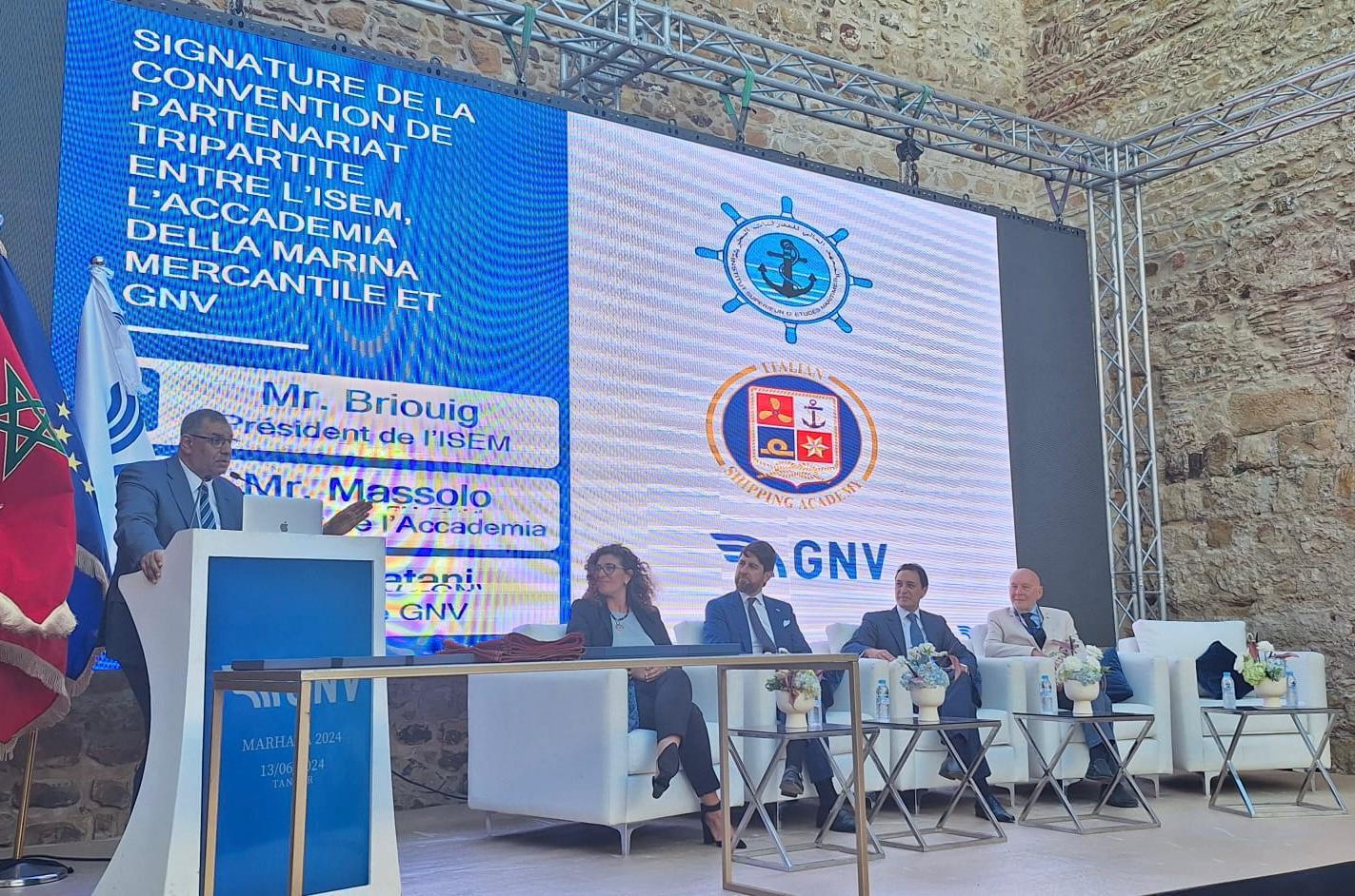 Signature à Tanger d'une convention de partenariat tripartite entre l'ISEM, l'Armateur Italien GNV et l'Académie Italienne de la Marine Marchande
