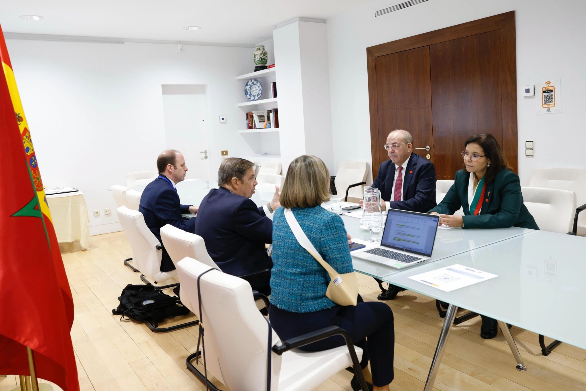 في إطار الاجتماع رفيع المستوى المغربي–الإسباني الثالث المنعقد بإسبانيا، عقدت السيدة زكية الدريوش، كاتبة الدولة المكلفة بالصيد البحري، رفقة السيد أحمد البواري، وزير الفلاحة والصيد البحري والتنمية القروية والمياه والغابات، جلسة عمل مع وزير الفلاحة والصيد البحري والتغذية الإسباني، السيد لويس بلاناس.