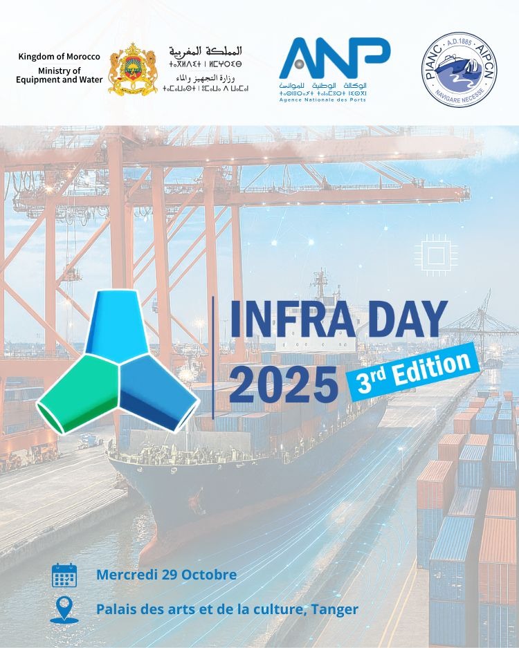 Il est à rappeler que la précédente édition de l’Infra Day, organisée à Bouznika en octobre 2023, avait marqué les esprits par la richesse de ses échanges autour du thème « Les infrastructures portuaires au cœur d’une dynamique 4.0 ». L’événement avait réuni responsables publics, partenaires institutionnels et experts technologiques autour de démonstrations inédites, notamment les « innovation talks » consacrés aux jumeaux numériques et aux E-Tetrapodes, ainsi que des expositions de drones marins et aériens.