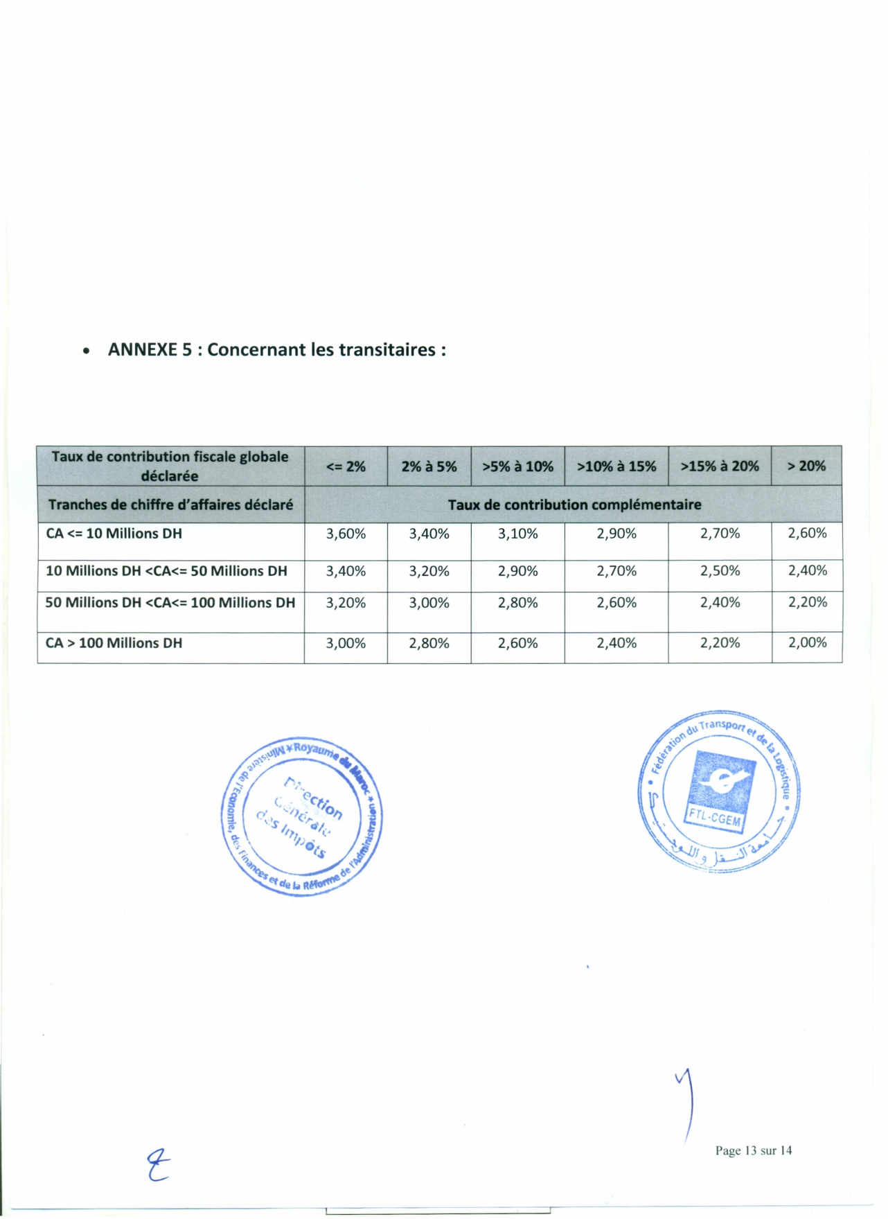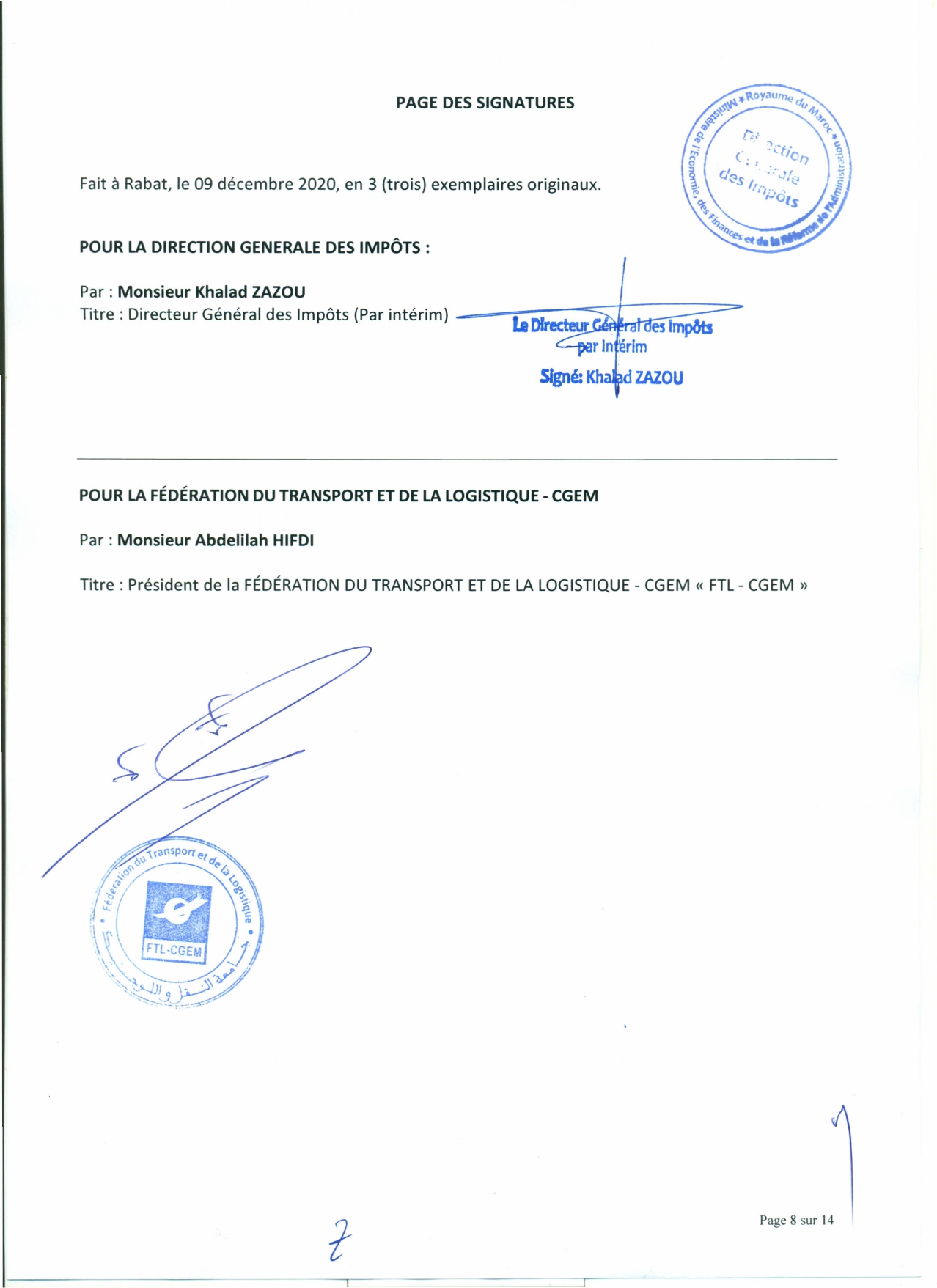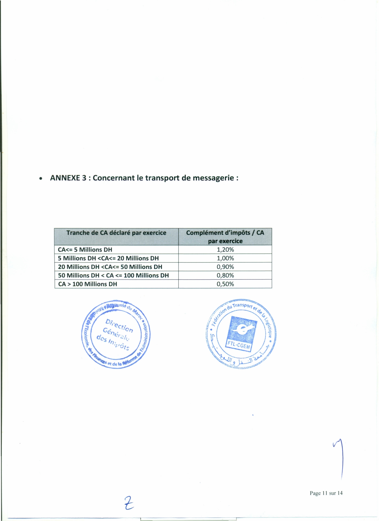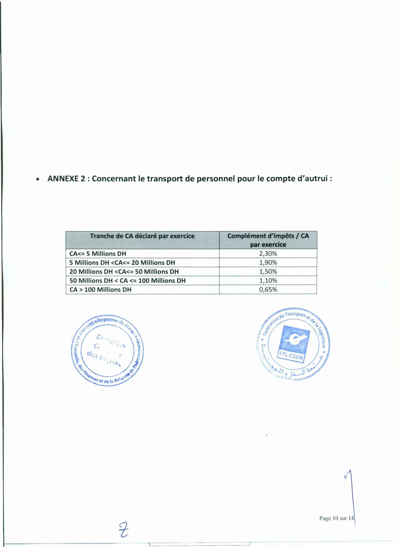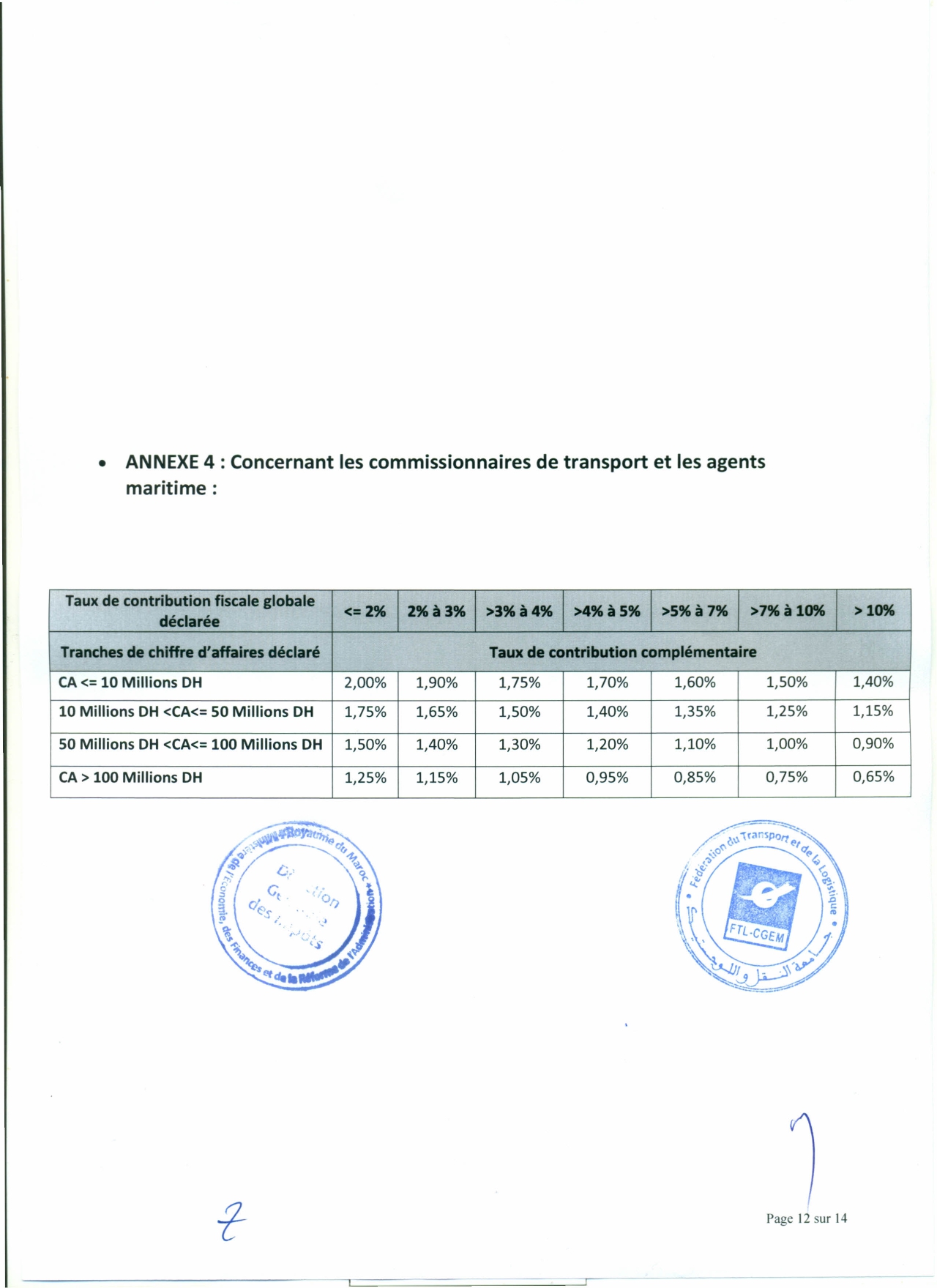 Convention pour la régularisation de la situation fiscale des personnes exerçant à titre principal les activités de transport de marchandises, de personnel et de messagerie, de transport touristique, des commissionnaires de transport, des agents maritimes