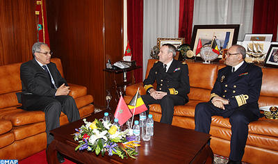 En exécution des Hautes Instructions royales, le ministre délégué auprès du Chef du gouvernement chargé de l'Administration de la Défense nationale, Abdeltif Loudyi, a reçu, mercredi à Rabat, l'Amiral de Division Michel Hofman, commandant la composante marine des forces armées belges, qui effectue une visite de travail au Royaume du Maroc, du 5 au 7 mars.