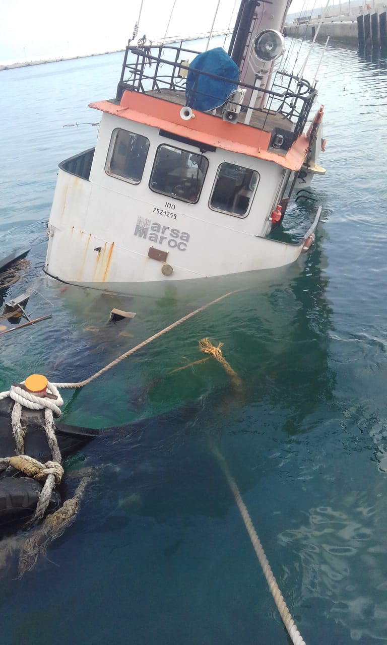 Aujourd'hui matin très tôt, un incident sans grande gravité au port de Tanger Ville a causé l'enfoncement sous l'eau d'un remorqueur Sidi Smail et une pilotine qui étaient amarrés à une rampe flottante qui a coulé malheureusement.
