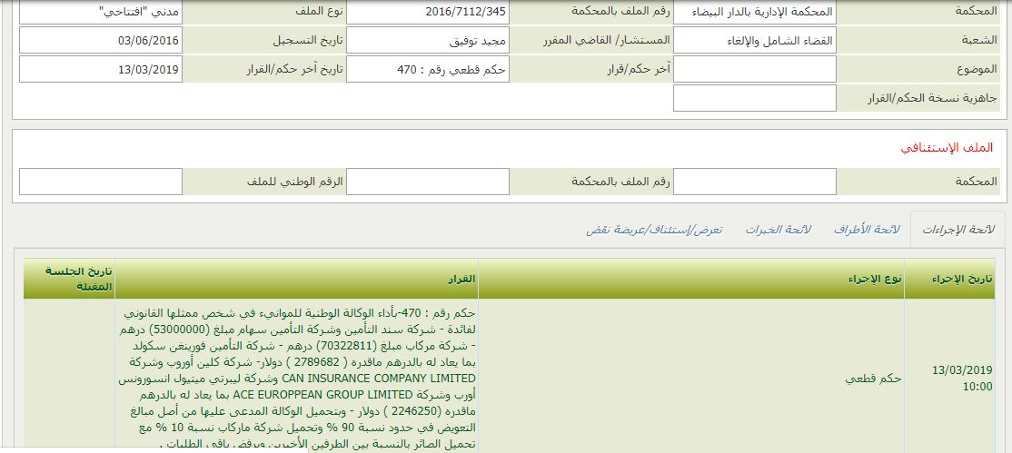- Les compagnies d'assurances SANAD et SAHAM un montant de 53.000.000,00 DHS