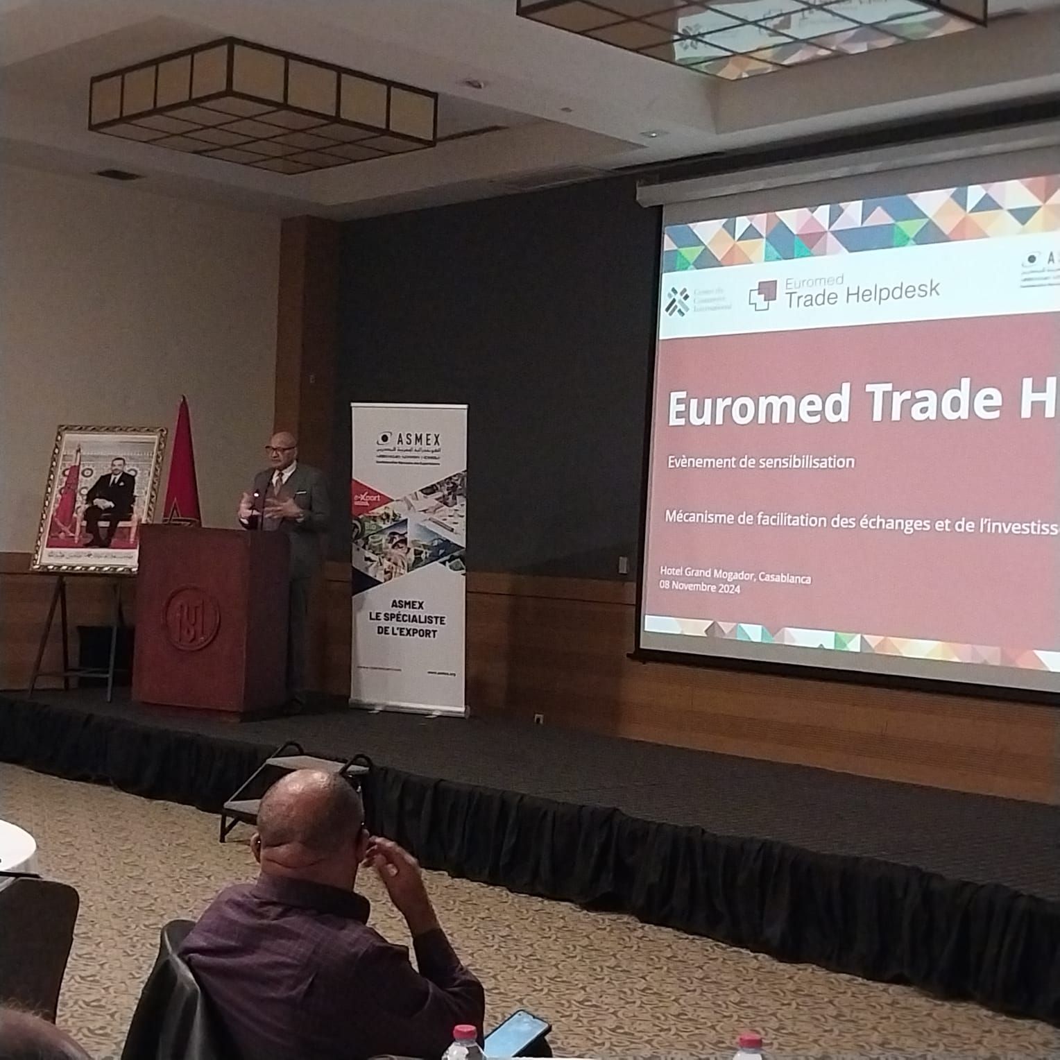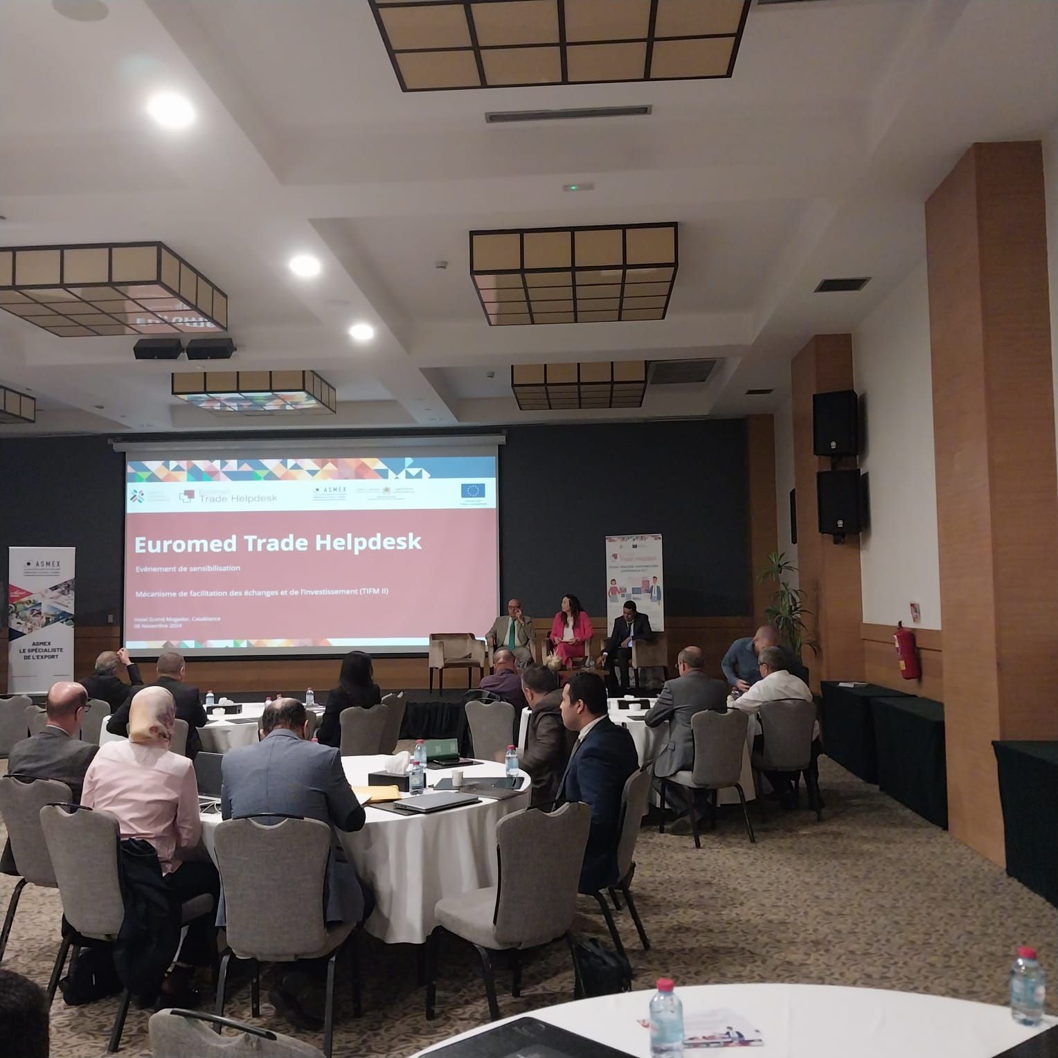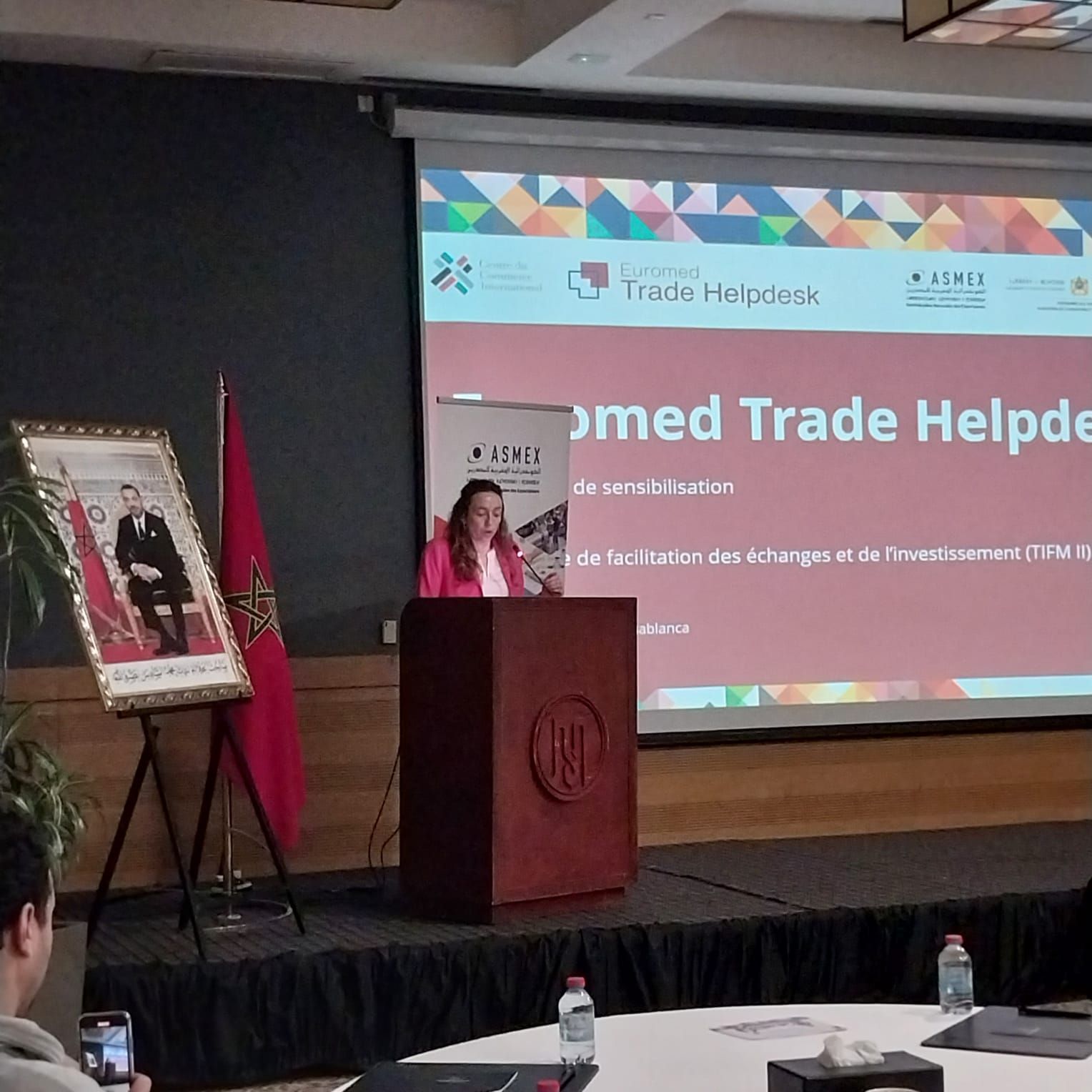 La Confédération des Exportateurs du Maroc (ASMEX) a eu le plaisir et le privilège de co-organiser, en collaboration avec le Ministère de l’Industrie et du Commerce, un séminaire de sensibilisation et d’information sur l'Euromed Trade Helpdesk, qui s'est tenu le vendredi 8 novembre 2024. Cet événement a bénéficié de la contribution précieuse de l'International Trade Centre (ITC), représentée par Mme Élodie Robin, Chef de projet du programme TIFM II, Section Intelligence Commerciale et de Marché.