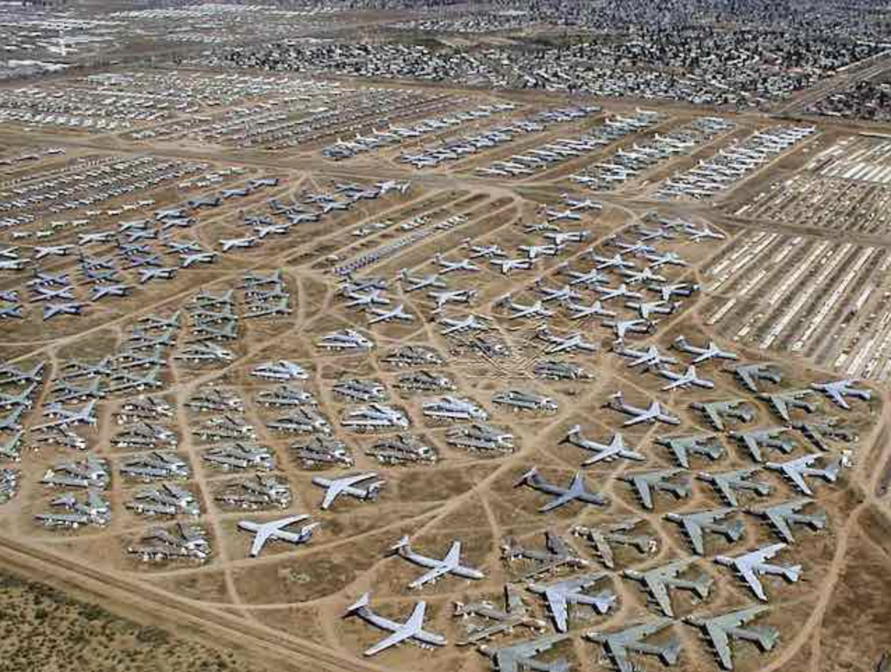 Le plus grand dépôt d'avions au monde, AMARG, est situé à Tucson, dans l'État américain de l'Arizona, et stocke des milliers d'avions militaires sur 1 052 hectares de terrain.