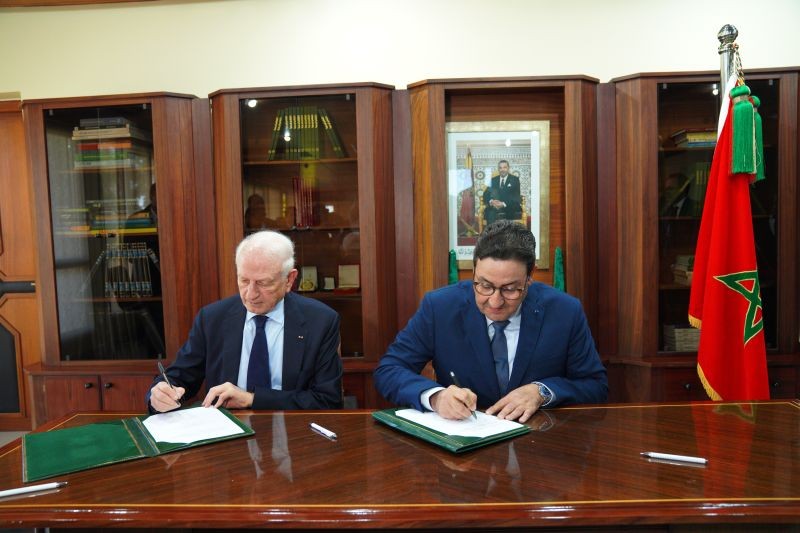 Monsieur Abdessamad KAYOUH, Ministre du Transport et de la Logistique en compagnie de M. André AZOULAY, Conseiller de Sa Majesté le Roi et Président de la Fondation de Recherche, de Développement et d’Innovation en Sciences et Ingénierie (FRDISI), ont présidé, le mercredi 14 mai 2025 au siège du Ministère, la cérémonie de signature de trois conventions spécifiques de partenariat entre le Ministère et la FRDISI.