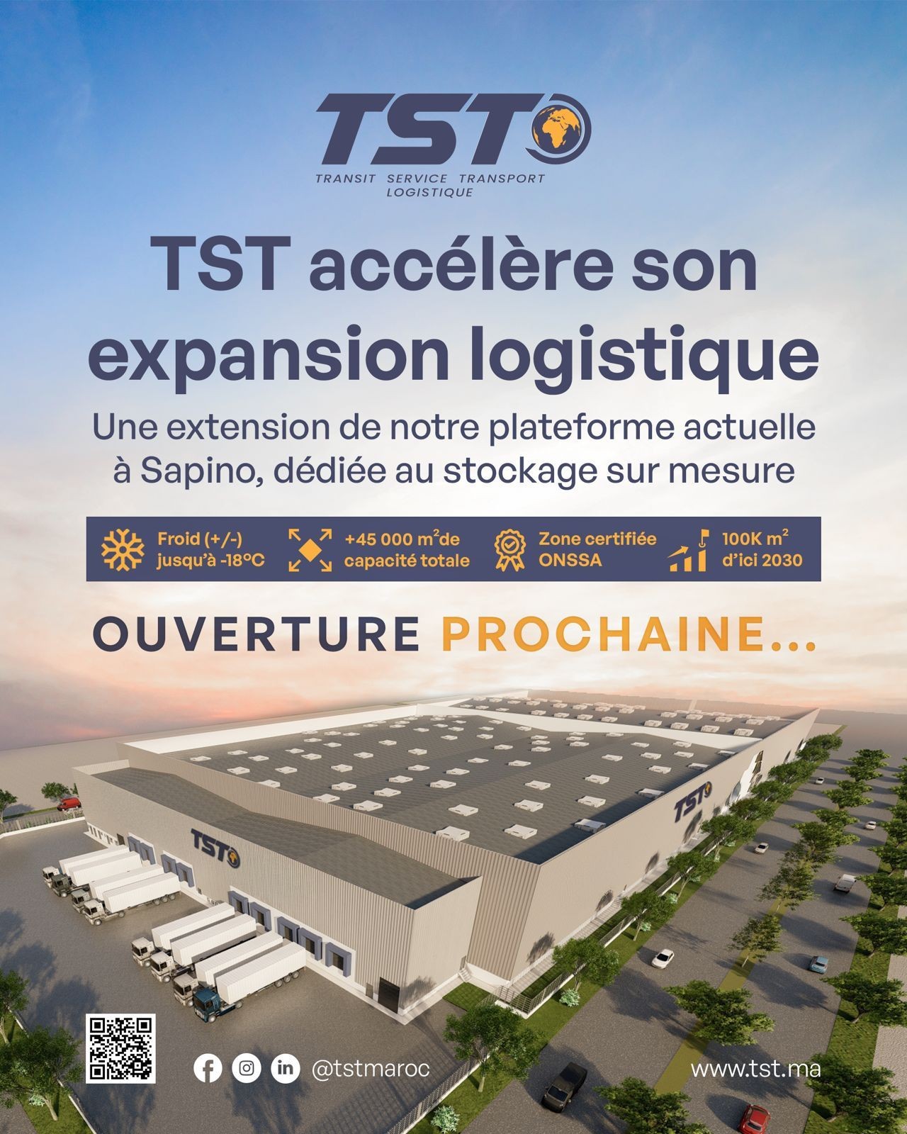 La plateforme logistique située à Sapino, dans la zone de Nouaceur – Casablanca, poursuit son développement avec une extension majeure conçue pour répondre aux exigences croissantes du marché en matière de stockage spécialisé et de solutions sur mesure.