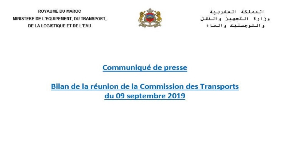 Le Ministère de l’Equipement, du Transport, de la Logistique et de l’Eau (METLE) porte à la connaissance de l’opinion publique, que dans le cadre de la mise en œuvre des conclusions du processus de dialogue entre le Ministère et les professionnels du transport routier de personnes, et suite aux réunions régulières tenues par la commission du transport pour examiner les dossiers relatifs au transport en commun de voyageurs, au transport touristique, au renouvellement septennal et au transport mixte, ladite commission a tenu, le 09 septembre 2019, une réunion présidée par Monsieur le Secrétaire Général du Département de l’Equipement, du Transport et de la Logistique.