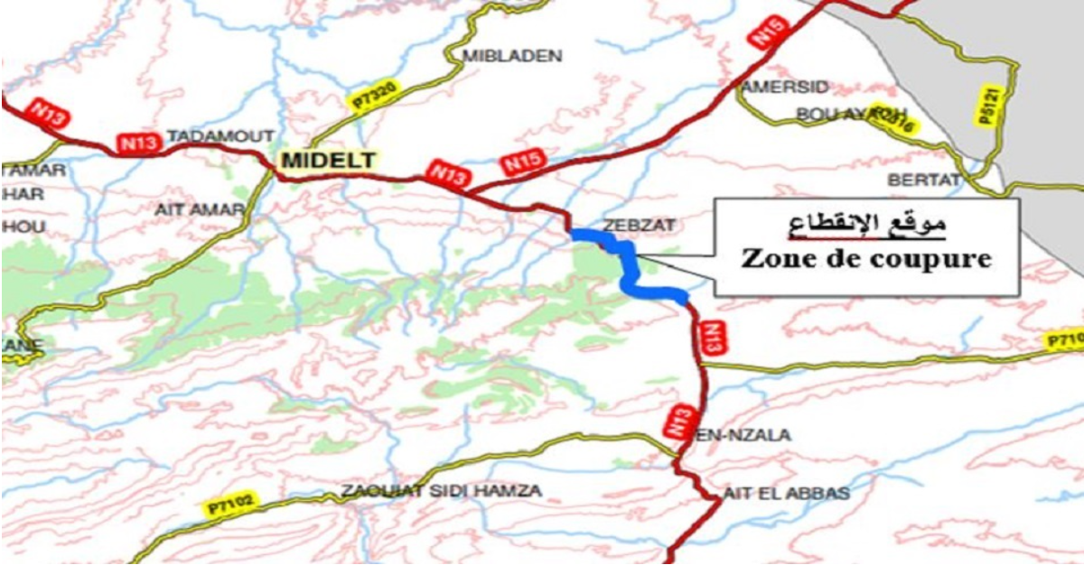 Le Ministère de l’Equipement et de l’Eau annonce que la circulation sera coupée pendant une durée de 3 heures, le samedi 26 mars 2022 de 09h00 à 12h00 sur le tronçon routier reliant Midelt à Errich de la route nationale n° 13 au niveau du col Tizi N’talghomt relevant de la commune territoriale Amersid – province de Midelt. Ladite coupure va permettre la réalisation des travaux de terrassement dans le cadre de l’élargissement et du renforcement de ce tronçon.