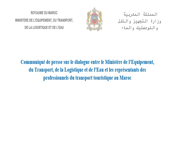 Communiqué de presse sur Le dialogue entre le Ministère de l’Equipement, du Transport, de la Logistique et de l’Eau et les représentants des professionnels du transport touristique au Maroc